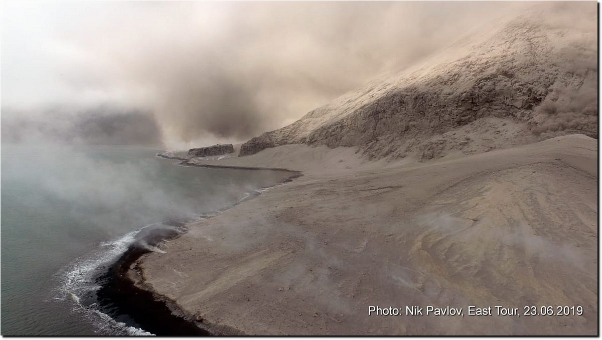 千島列島のライコケ島爆発噴火後、初の近接画像(6月23日撮影とのこと)。ロシアIVS (Institute of Volcanology and Seismology FEB RAS)による。https://t.co/ByPJc2Wvmx pic.twitter.com/2zr5TwjwAU