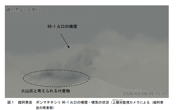 2026年3月8日9時15分頃、ポンマチネシリ火口で噴火が発生。